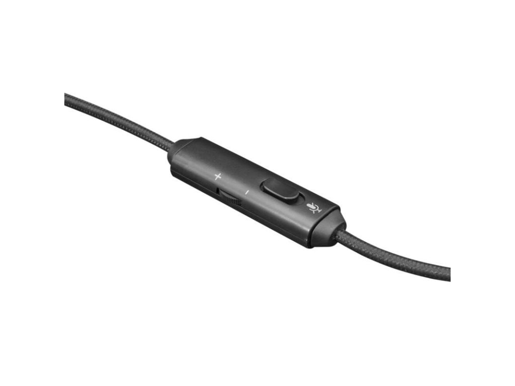 Herní headset, drátový, s mikrofonem, červené LED podsvícení, délka kabelu 2,2 m, 2x 3,5mm jack + USB, impedance 32 Ohm, frekvenční odezva 20 Hz – 20 kHz, černý