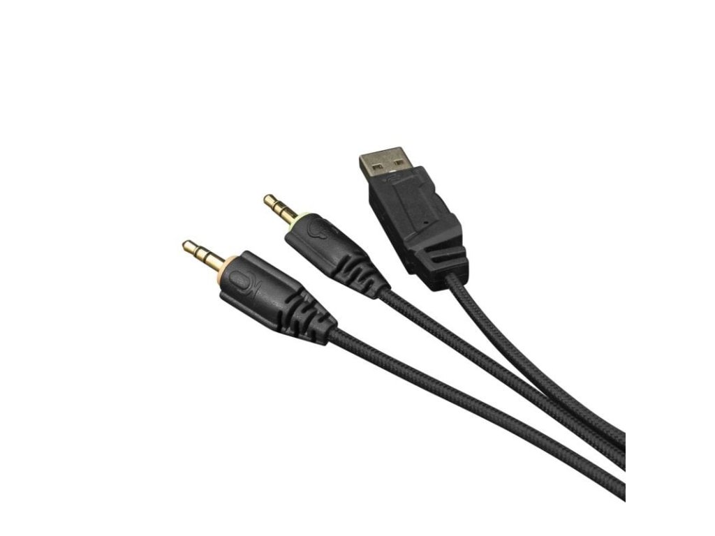 USB kabel je velmi odolný a má délku 220 cm, slouží k připojení headsetu k PC a k rozsvícení LED světel umístěných na vnější straně pavilonu.