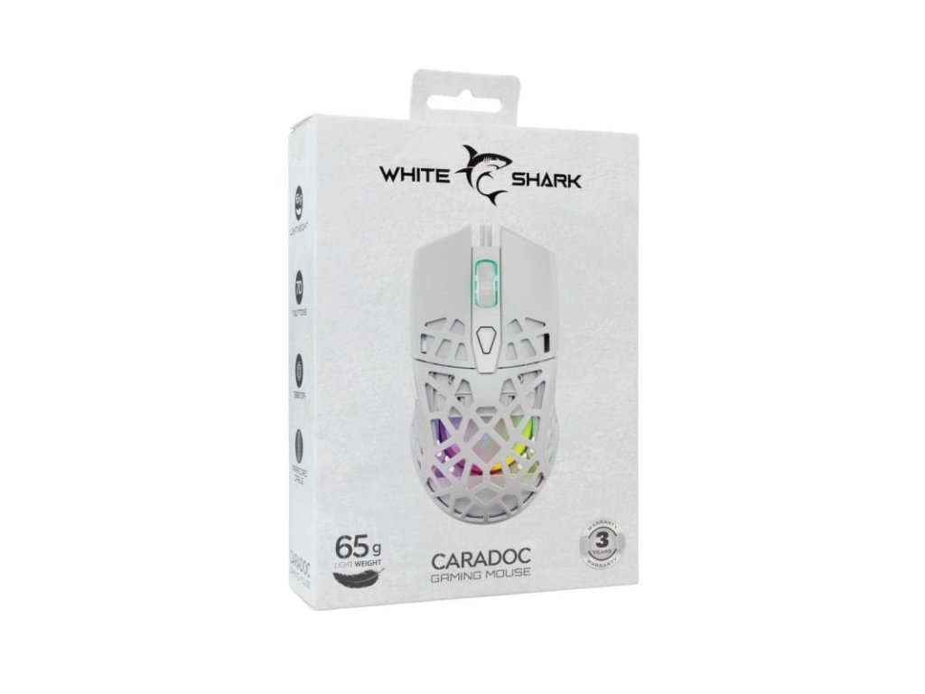 White Shark CARADOC - Lehká herní myš s precizním optickým snímačem, RGB podsvícením a ultra ohebným paracord kabelem.