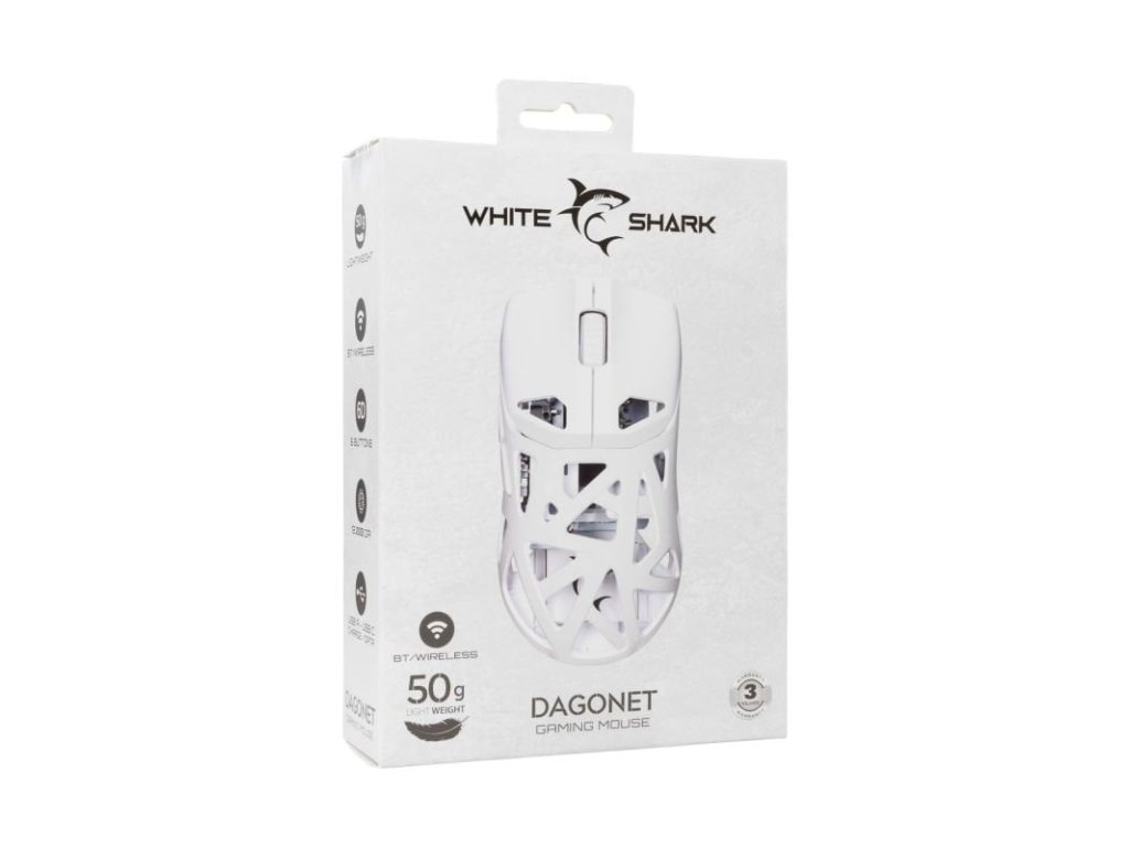 White Shark herní myš DAGONET - Extrémně lehká herní myš s trojím připojením a DPI až 24 000.