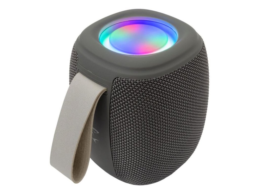Bluetooth reproduktor, výkon 5 W, výdrž baterie až 3 hodiny, FM rádio, handsfree, Bluetooth, slot na USB flash disk, šedý