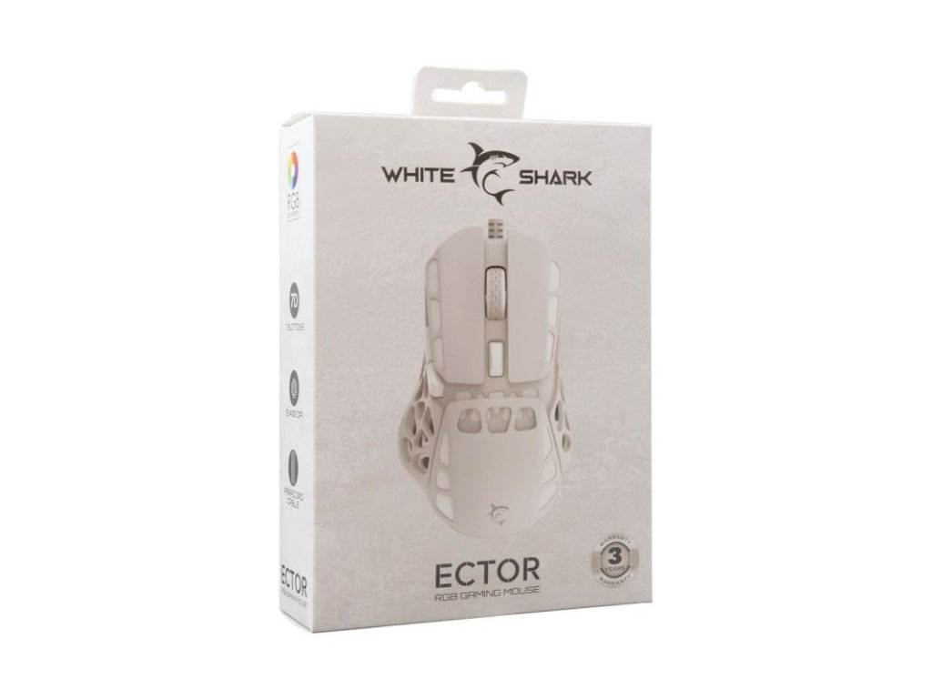 White Shark herní myš ECTOR je designována pro maximální herní výkon a pohodlí. 7D tlačítek, RGB osvětlení, HUANO spínače.