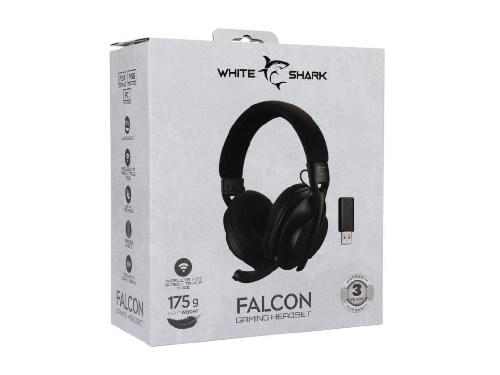 Zažijte špičkový herní zvuk a pohodlí s bezdrátovými sluchátky White Shark Falcon.