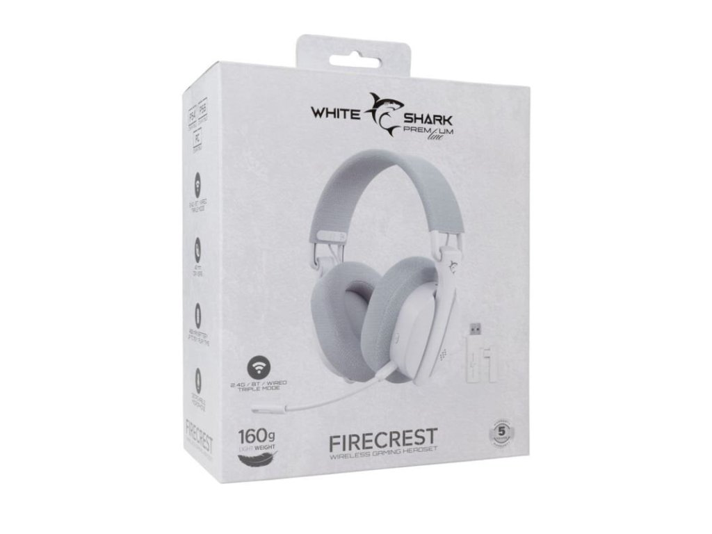 Bezdrátový herní headset White Shark FIRECREST kombinuje lehkost, výkon a všestrannost.
