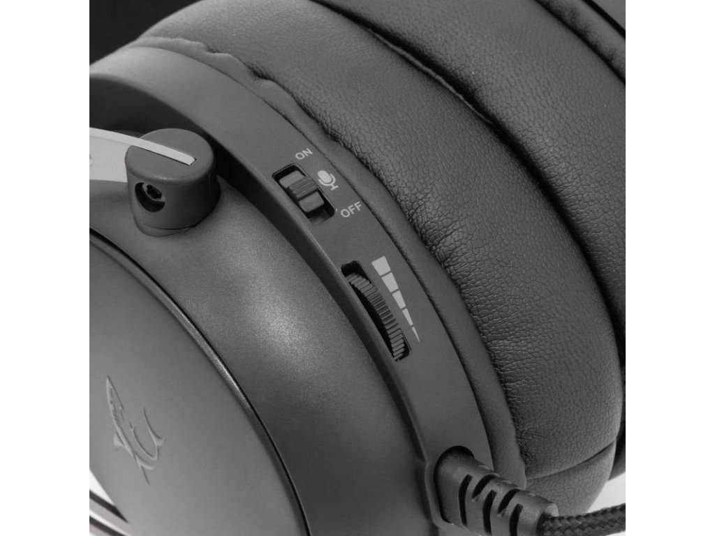 Herní headset, drátový, s mikrofonem, délka kabelu 2 m, 3,5mm jack, 53mm měniče, frekvenční odezva 20 Hz – 20 kHz, černošedý
