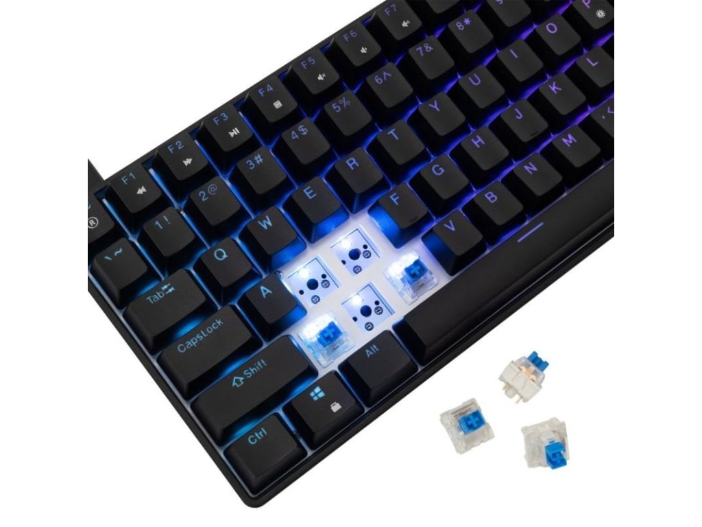 HOT-SWAP BLUE MECHANICAL SWITCHES: Mechanické spínače typu Blue poskytují rychlou a přesnou odezvu s dlouhou životností (více než 50 milionů stisknutí).