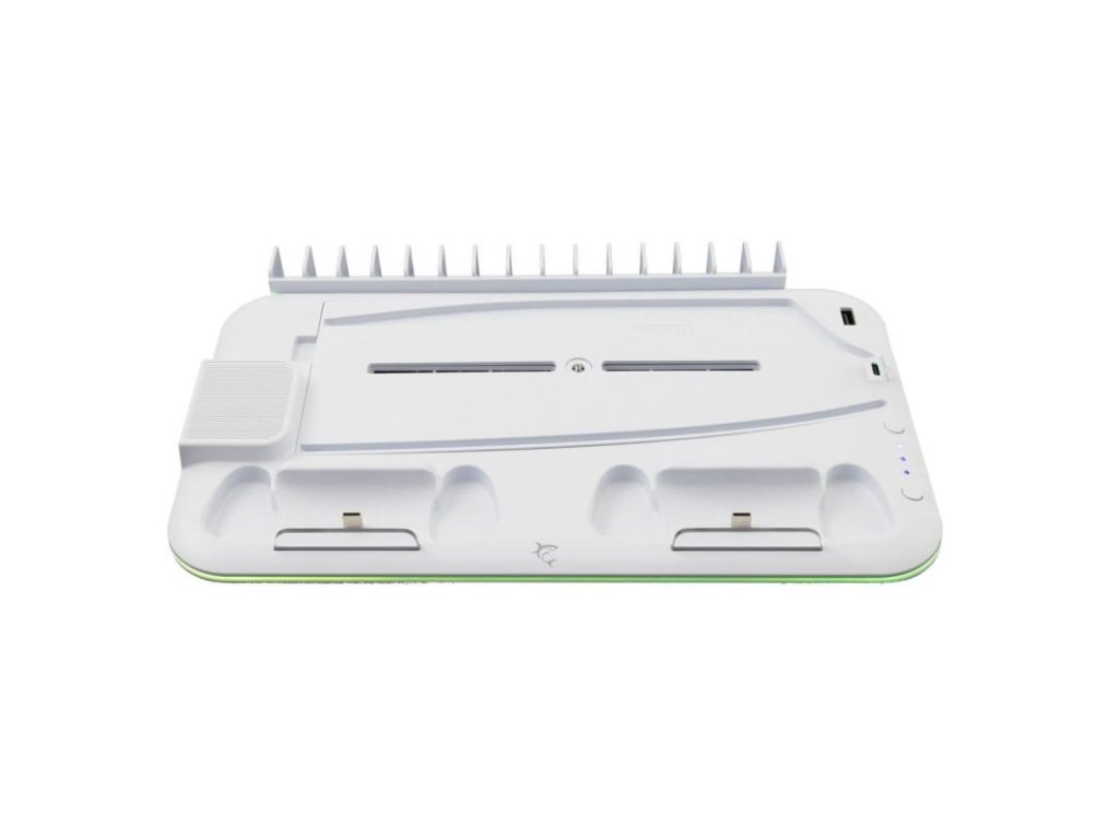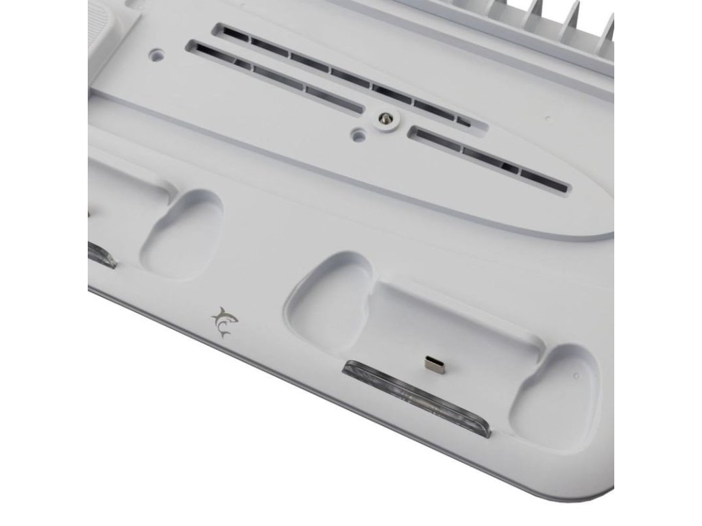 White Shark KIMURA-2 je multifunkční stojan, chladič a nabíjecí stanice pro PS5, který zajišťuje efektivní chlazení, organizaci herních disků a pohodlné nabíjení ovladačů.