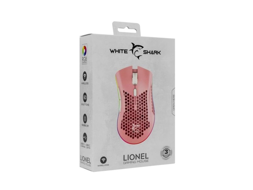 White Shark herní bezdrátová myš LIONEL, 6D, 10 000 dpi, která přináší precizní ovládání, ohromující design a neomezenou svobodu díky bezdrátové technologii.