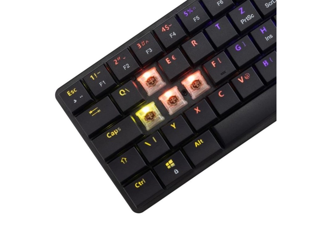 Minimalistické 61/62 klávesové rozložení šetří místo na stole a je ideální pro hráče, kteří potřebují více prostoru pro myš.