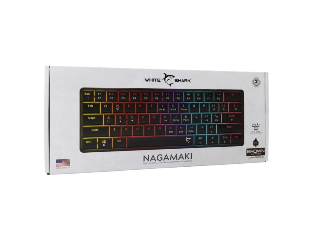White Shark NAGAMAKI je nízkoprofilová mechanická herní klávesnice, která spojuje kompaktní design s vysokou přesností a rychlou odezvou.