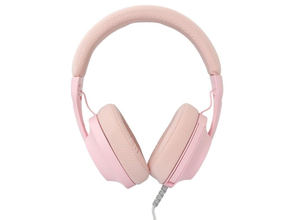 Herní headset, drátový, s mikrofonem, délka kabelu 1,8 m, 3,5mm jack, 40mm měniče, frekvenční odezva 20 Hz – 20 kHz, růžový