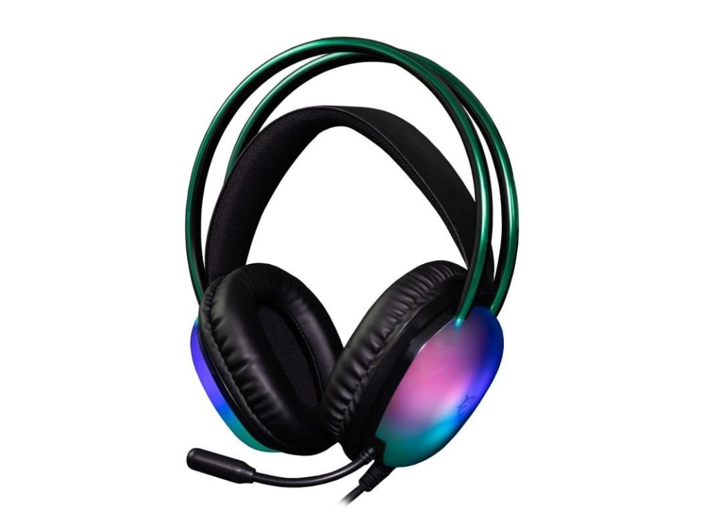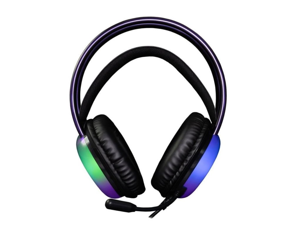Herní headset, drátový, s mikrofonem, RGB podsvícení délka kabelu 2 m, 3,5mm jack + USB, 50mm měniče, frekvenční odezva 20 Hz – 20 kHz, černý