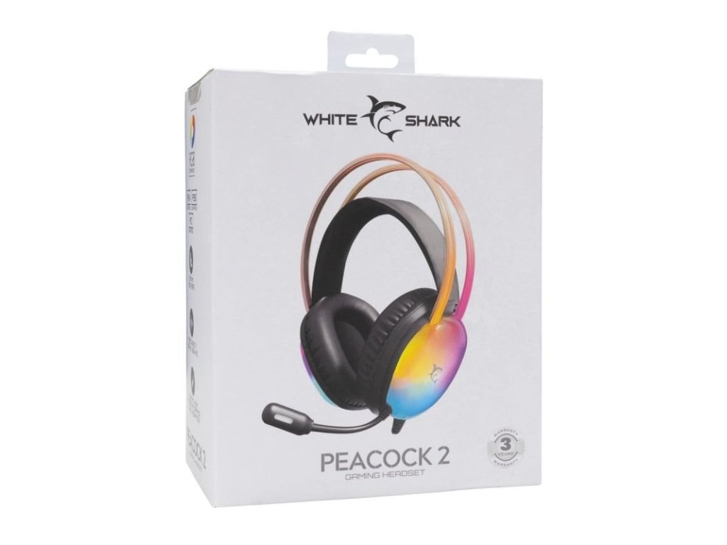 White Shark herní headset PEACOCK 2 - Stylový herní headset s RGB podsvícením a výkonným zvukem pro každou platformu.