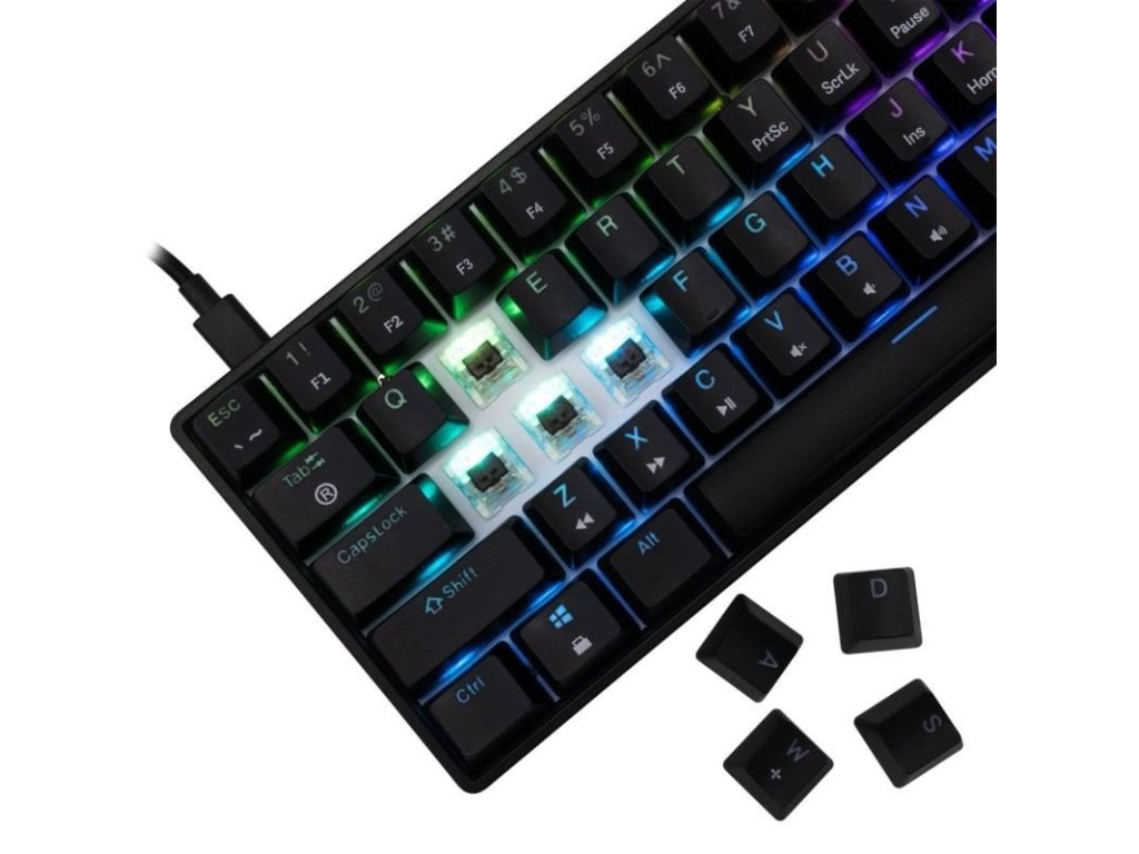 Herní mechanická drátová klávesnice, kompaktní, hnědé hot-swap spínače, RGB podsvícení, full anti-ghosting, délka kabelu 1,8 m, US rozložení kláves, černá