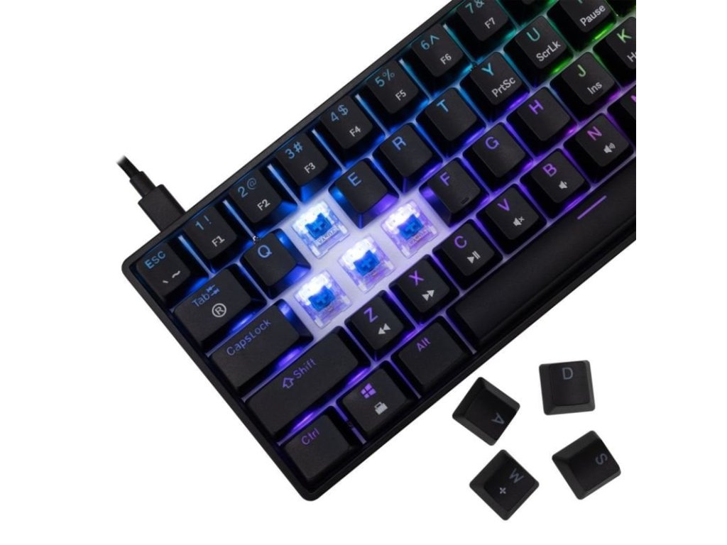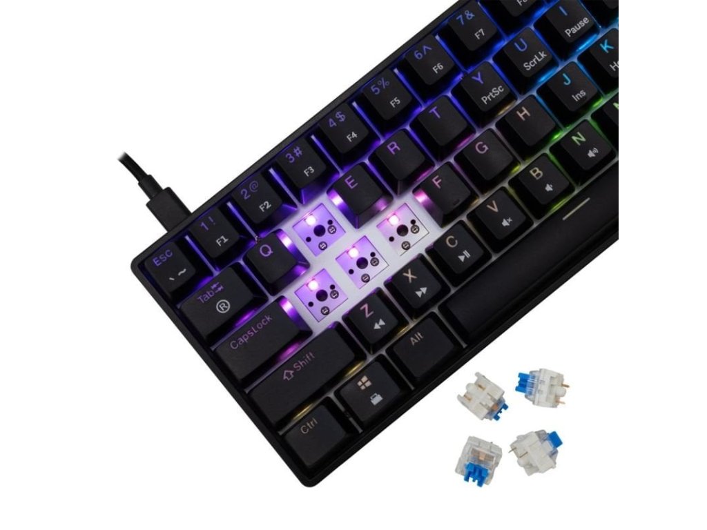 Herní mechanická drátová klávesnice, kompaktní, modré hot-swap spínače, RGB podsvícení, full anti-ghosting, délka kabelu 1,8 m, US rozložení kláves, černá