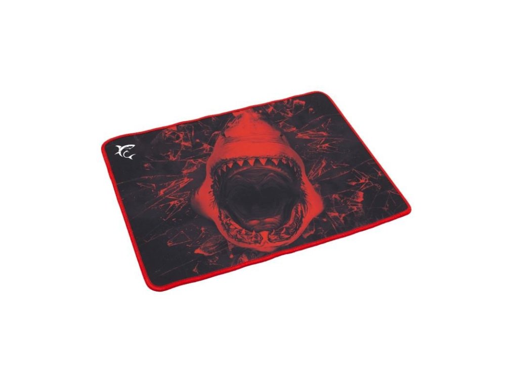 Podložka pod myš 400 x 300mm, hladce šité okraje proti třepení, měkký látkový povrch a strukturovaná gumová spodní strana, černá s červeným motivem žraloka