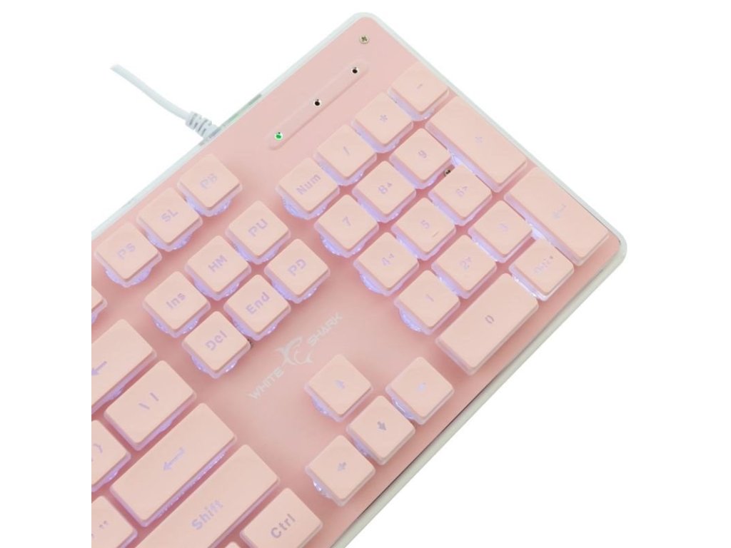 Herní drátová klávesnice, modré LED podsvícení, anti-ghosting pro 19 kláves, délka kabelu 1,5 m, US rozložení kláves, růžová