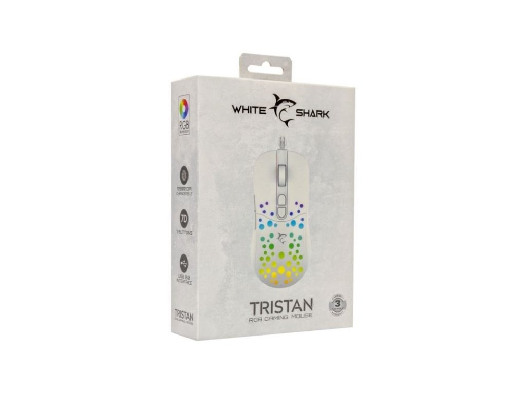 White Shark herní myš TRISTAN-2 RGB, 12.800 dpi, bílá