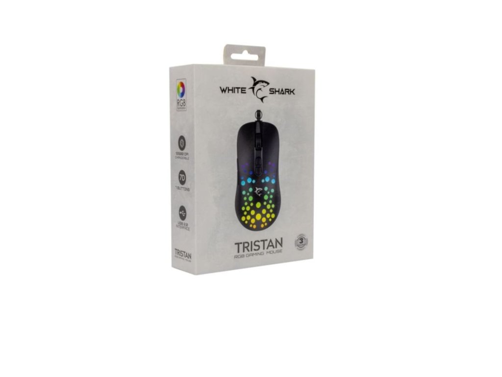 White Shark TRISTAN-2 - Herní myš pro náročné hráče, rozlišení 12 800 DPI, ergonomický design, RGB osvětlení s 16,8 M barvami.