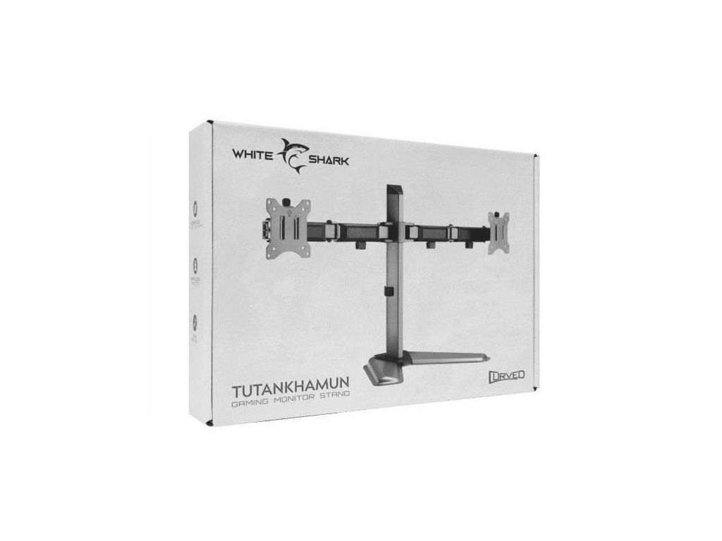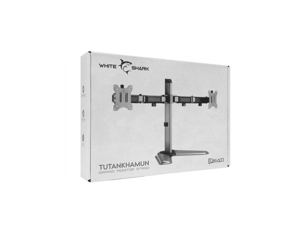 Dvojitý herní stojan "TUTANKHAMUN" - kde se setkává velikost s funkcí. Zvýšte svou sestavu tímto stojanem na stůl. S impozantním rozsahem ramene 380 mm je určen pro obrazovky od 17'' do 32''.