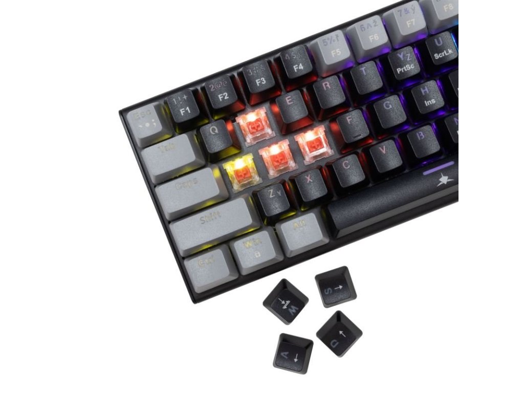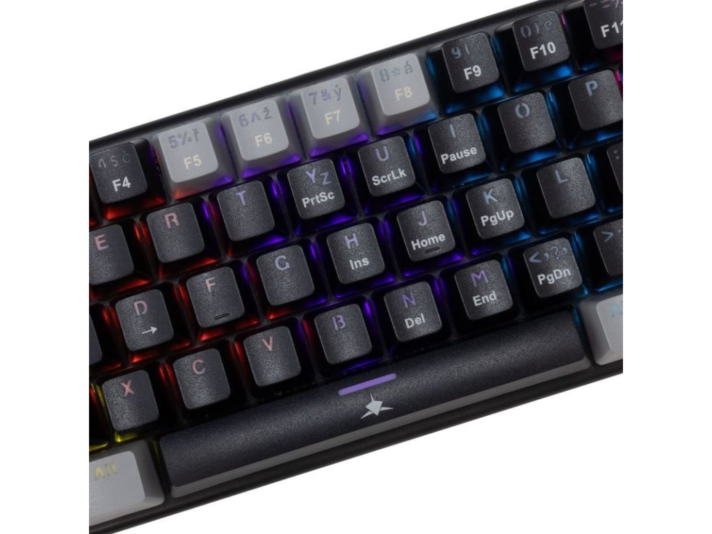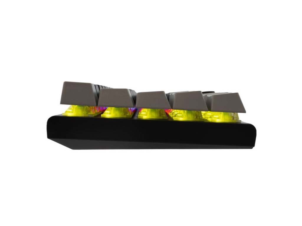 Tato kompaktní klávesnice s 63 klávesami si zachovává oblíbené funkce originálu, včetně mechanických červených spínačů a 17 duhových světelných efektů.
