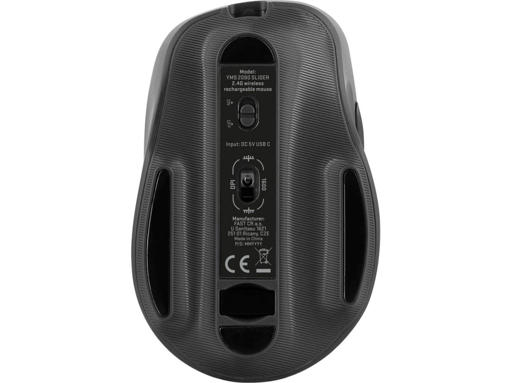 YENKEE YMS 2080GY 2,4G bezdrátová dobíjecí myš SLIDER, Tiché spínače, Dobíjecí baterie, Ultra lehká konstrukce, 6 tlačítek