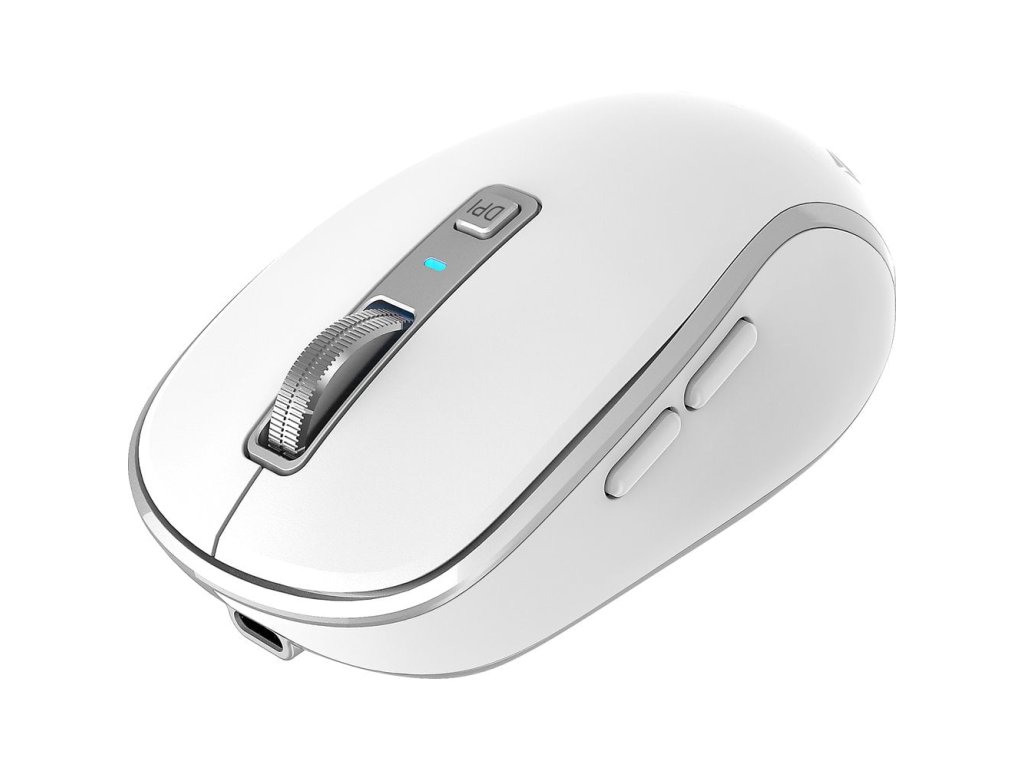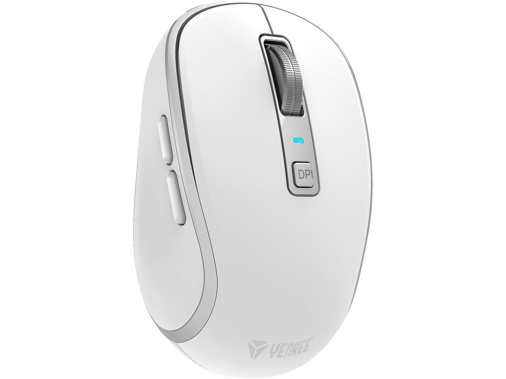 YENKEE YMS 2085WE Bezdrátová dobíjecí myš NOBLE, bílá, Pro neomezené pohodlí vám NOBLE poskytuje 3 řešení bezdrátového připojení současně. Standardní připojení 2,4 G s USB klíčem a dvěma připojeními Bluetooth označenými jako BT1 a BT2