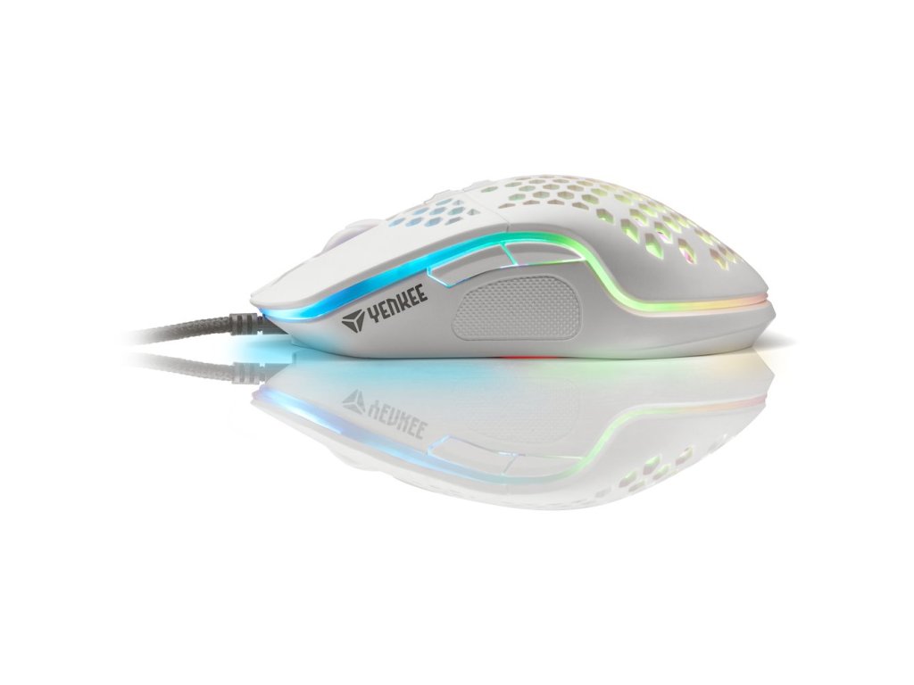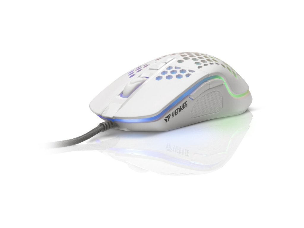 YENKEE YMS 3030WE SHOTGUN Herní myš, Ultra lehká a perforovaná konstrukce, Spolehlivý a přesný 6400 DPI senzor, Programovatelná tlačítka a RGB podsvícení,