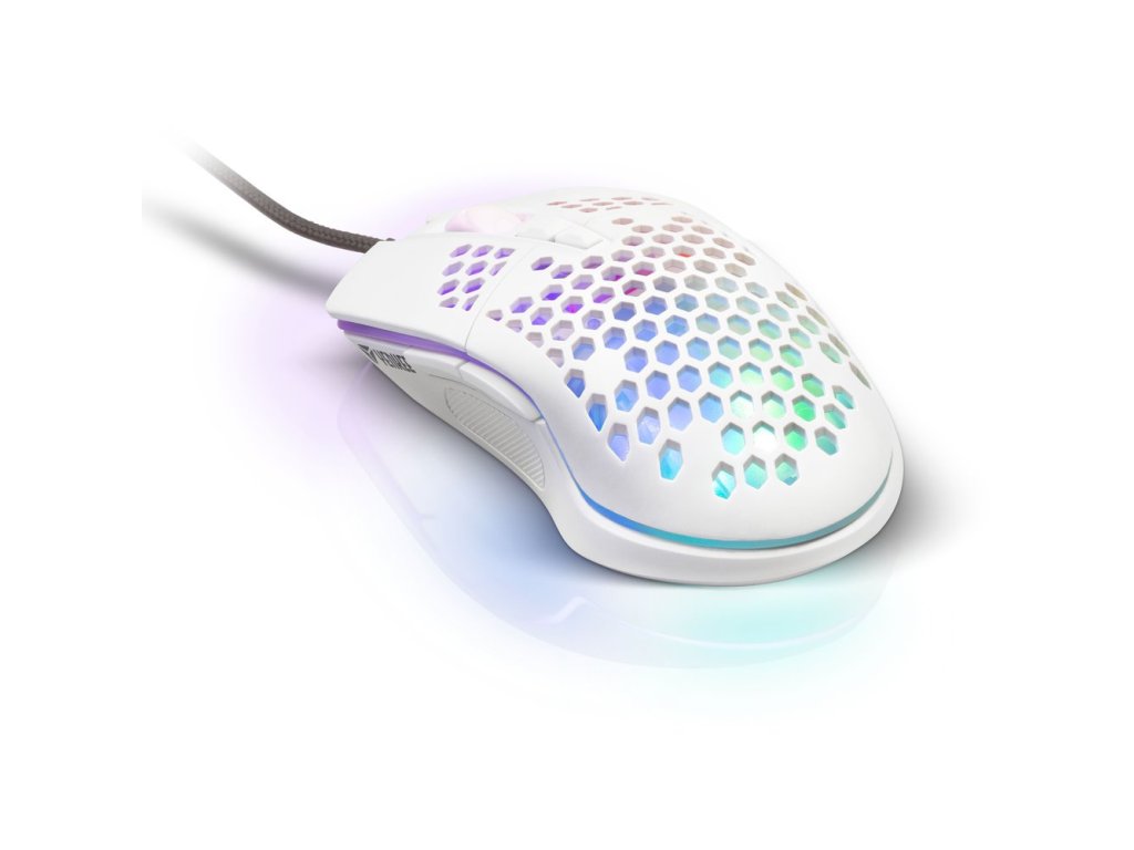Shotgun. Ultralehká herní myš Shotgun. Jsem tvojí budoucí nejoblíbenější herní myší. Mé tělo je protkáno děrováním, které nejenom celou konstrukci značně zlehčuje, ale hlavně dodává na vzdušnosti. To zabezpečí, že se ti nebude při dlouhých herních maratonech potit ruka a cesta za vítězstvím bude ještě snažší!