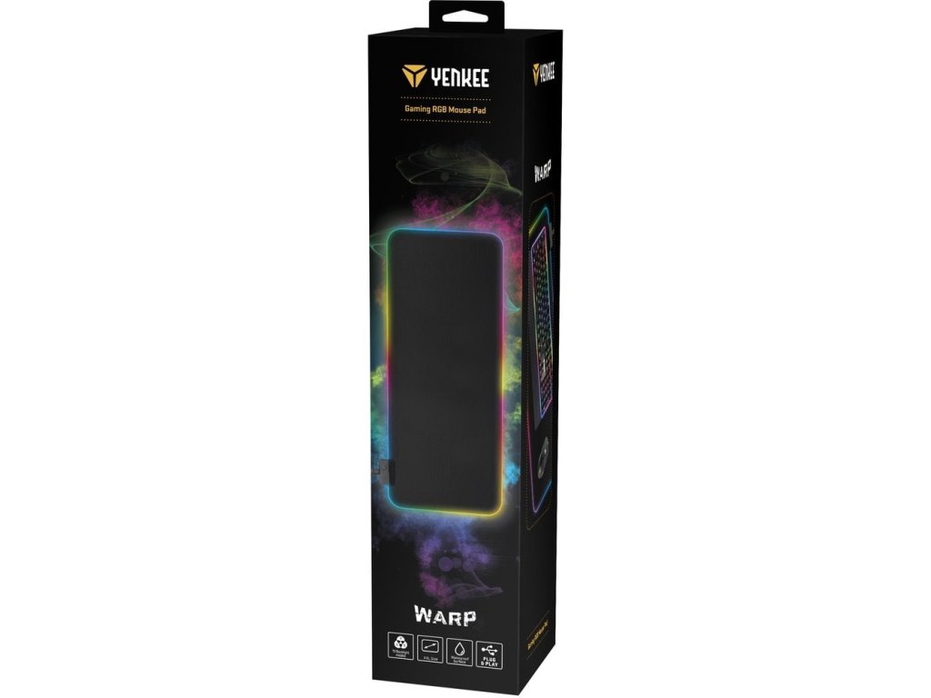 YENKEE YPM 3006 Herni RGB podložka pod myš gelová, 13 měnitelných režimů osvětlení, Protiskluzová stabilní pryžová základna, Plynulý pohyb myši a vylepšená stabilita klávesnice