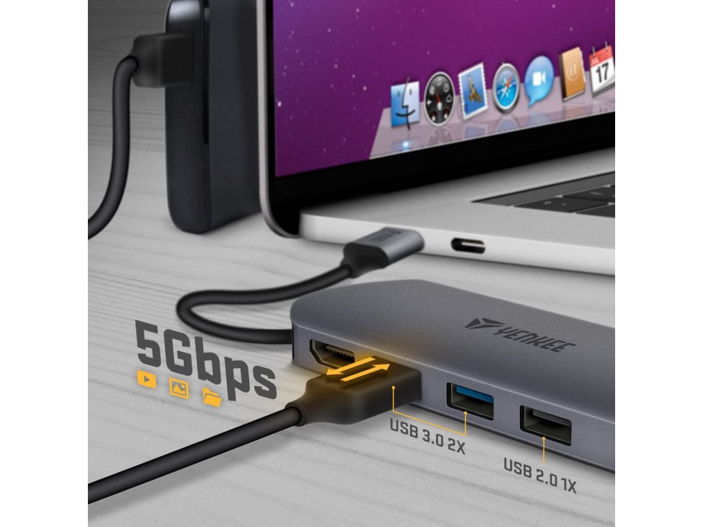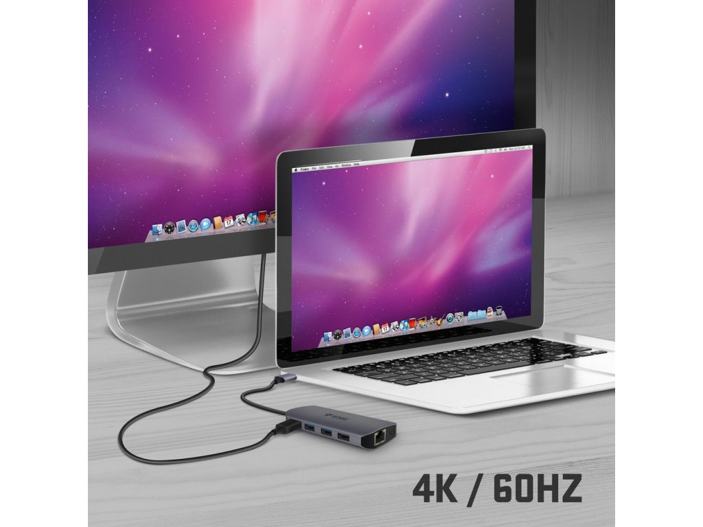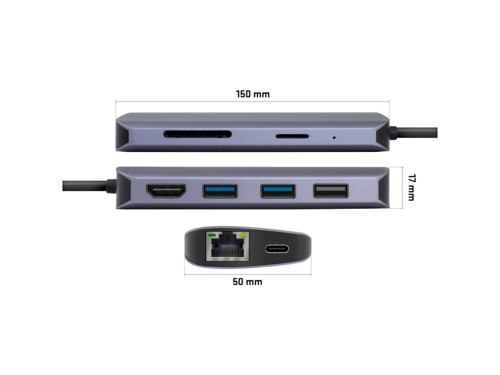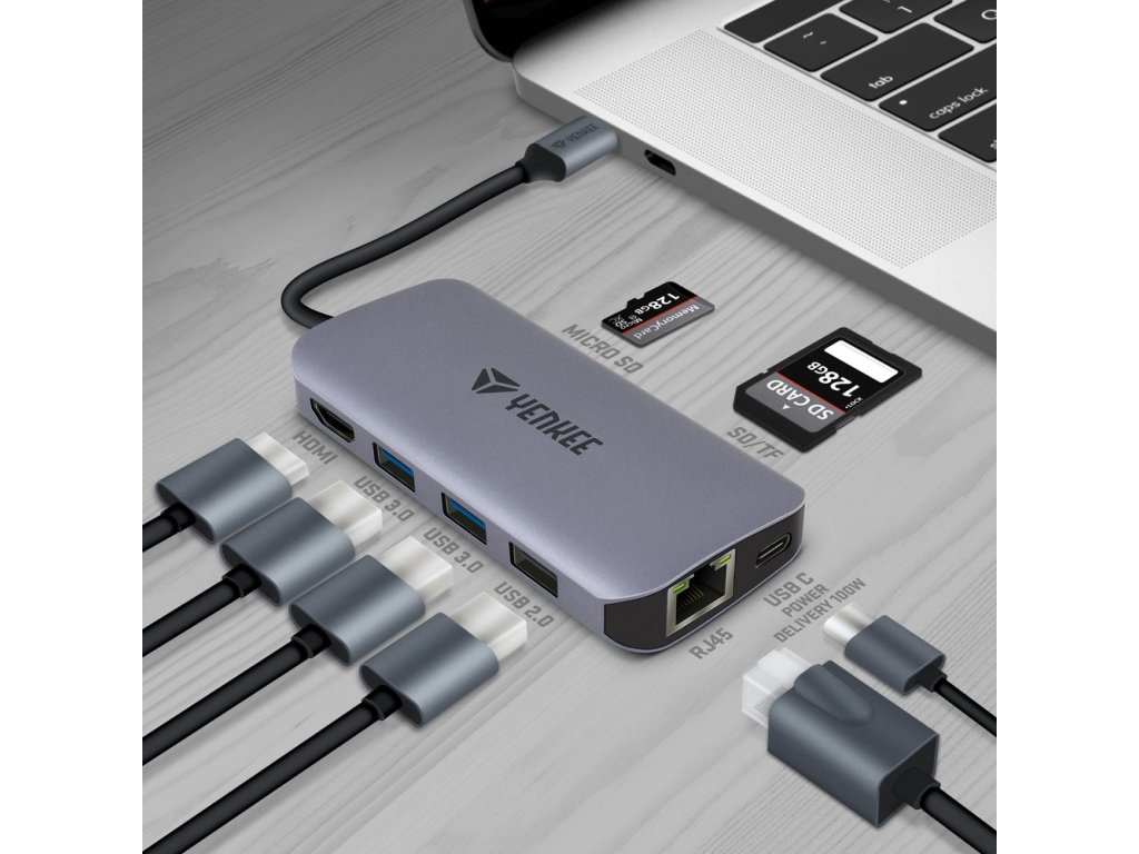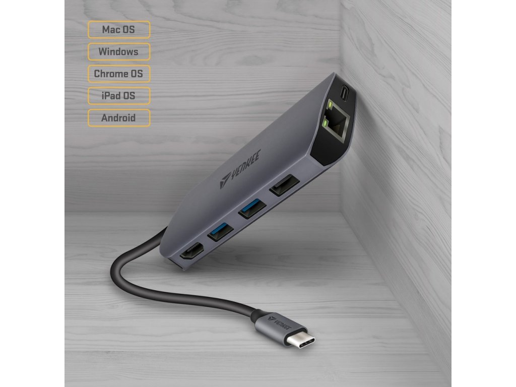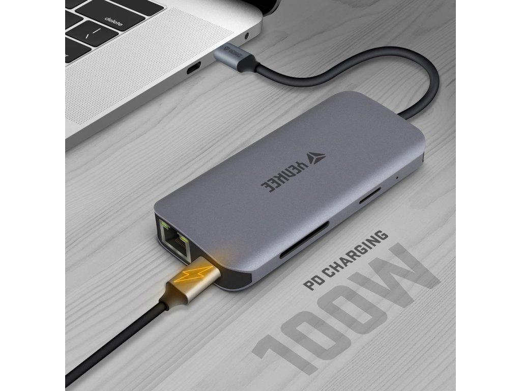 Univerzální USB C Multi-port hub pro notebooky nabízí rozšíření vašeho zařízení až o 8 portů včetně HDMI ve 4K a Power Delivery až 100W. Multi-port hub je kompatibilní se všemi zařízeními vybavenými USB C portem bez ohledu na operační systém. Podporované operační systémy jsou MacOS, IpadOS, Windows 7/8/10, Chromebook a Android. Špičkový Type C port 3.2 Gen.2 udržuje vaše zařízení nabité zatímco využíváte ostatní porty díky technologii Power Delivery 3.0, která podporuje nabíjecí výkon až 100W. HDMI výstupní port podporující rozlišení až 4K/30Hz rozšíří pracovní plochu o další monitor. Bezpečné a rychlé připojení k síti LAN (internetu) pomocí RJ-45 Ethernet portu, s podporou rychlostí 10/100/1000Mbps. Příslušenství k notebooku jako třeba myš a klávesnici