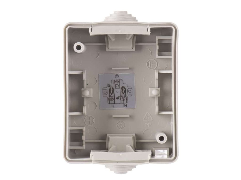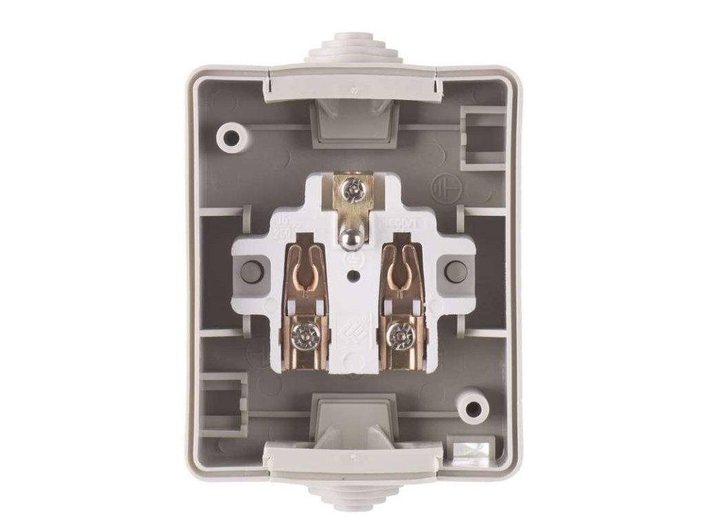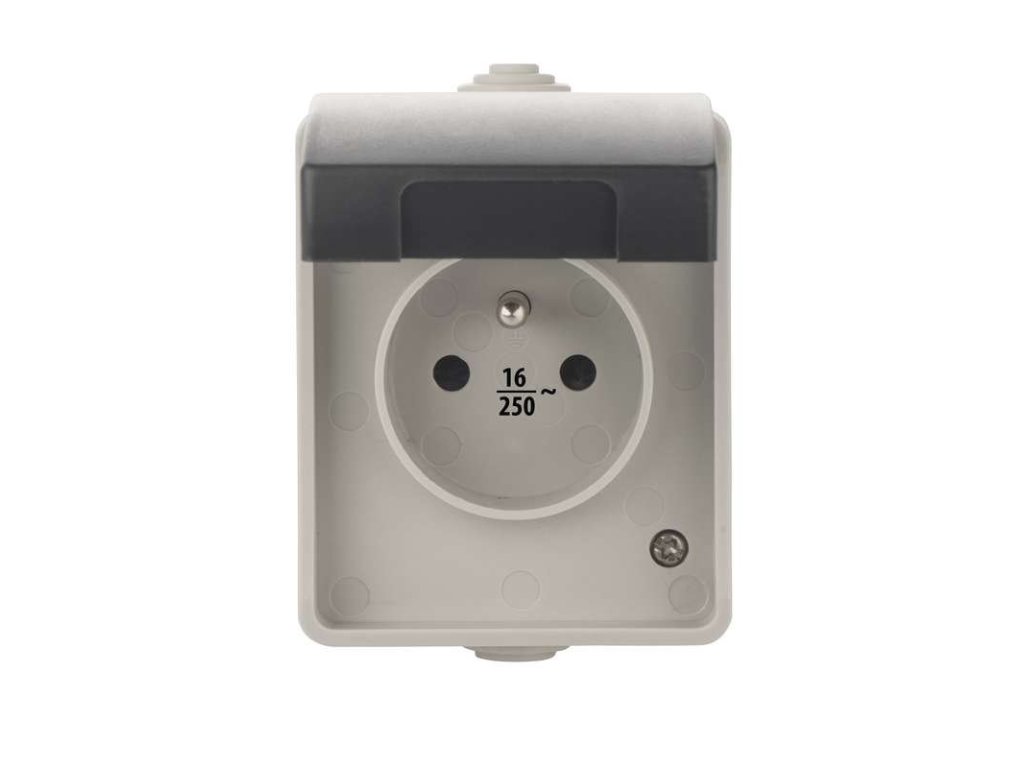 kvalitní nástěnná voděodolná FRENCH zásuvka s ochraným víčkem.